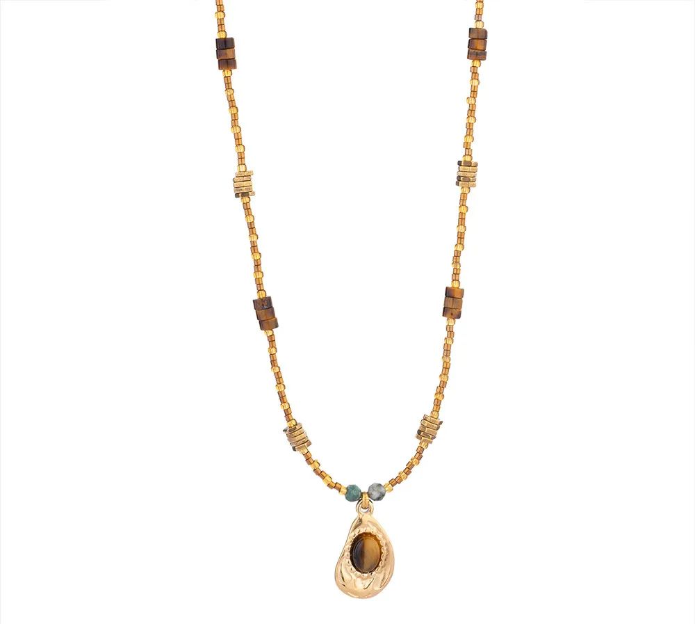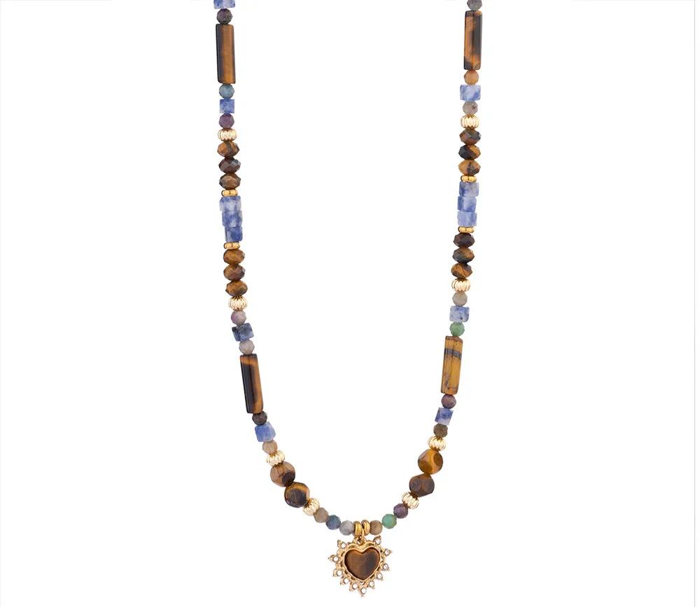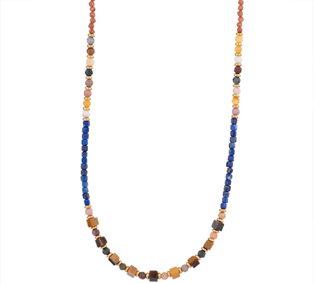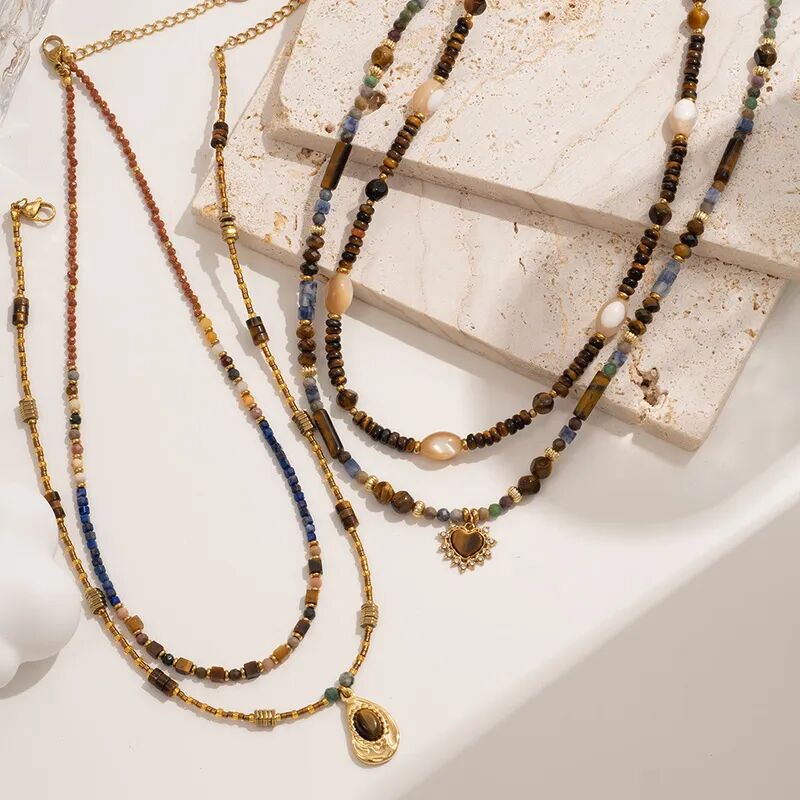 The Aurora Layered Beaded Necklace Set from Asoca combines vibrant natural stone beads with delicate pendants, creating a chic, bohemian-inspired look. Perfect for layering or wearing solo for effortless elegance.