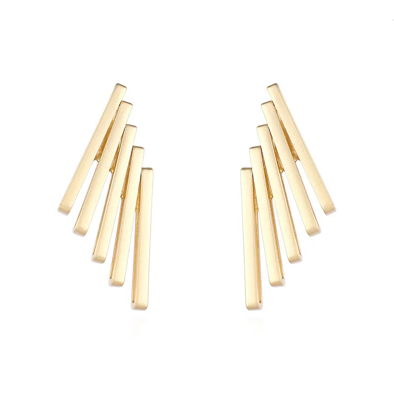 Chic and contemporary, these gold bar earrings feature a layered design that creates a bold yet elegant statement. Perfect for adding a modern edge to any outfit.