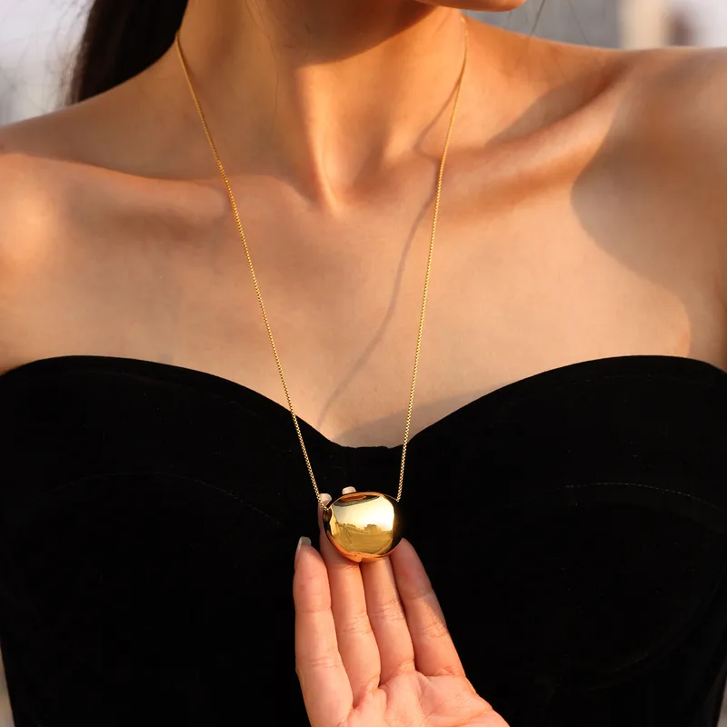 A statement-making gold dome pendant necklace designed to bring sophistication and modern elegance to any outfit.