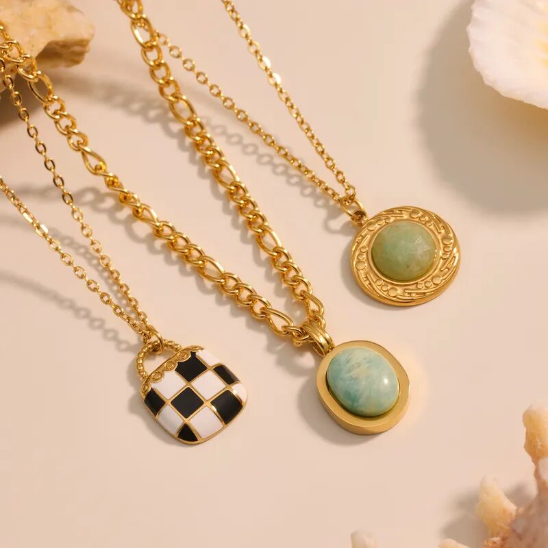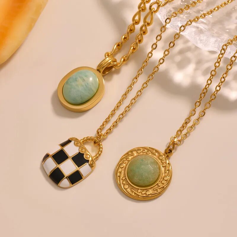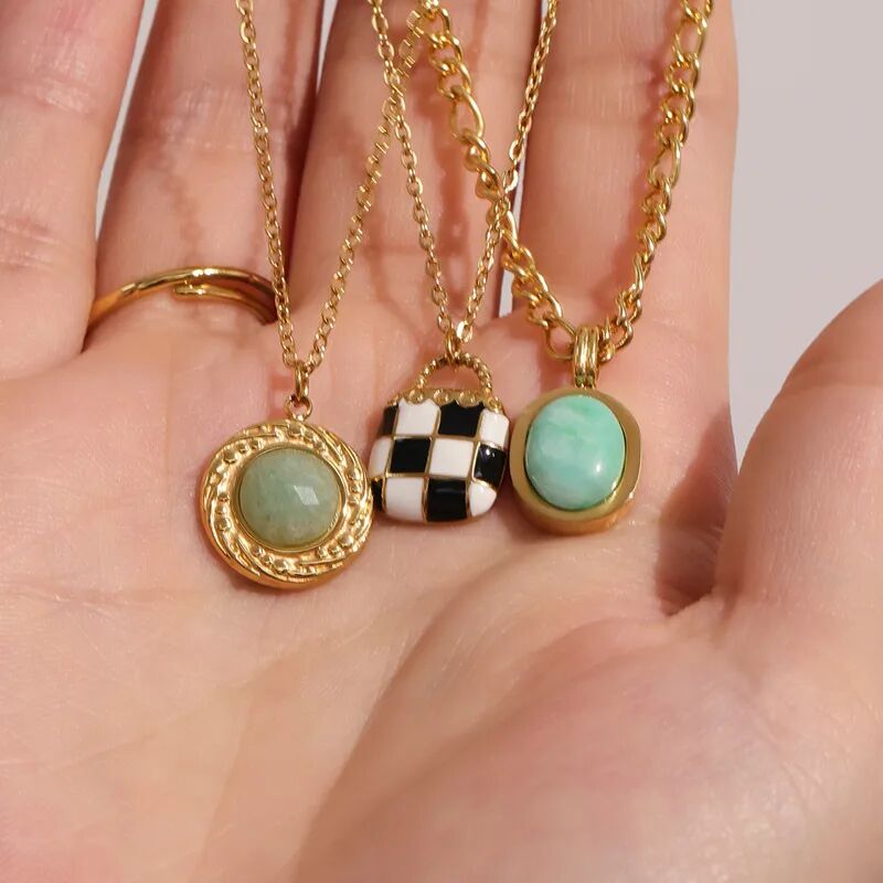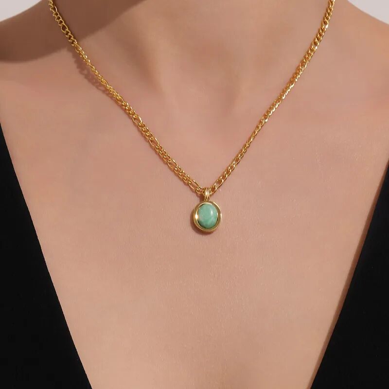 Be the first to review “Gold Oval Pendant Necklace with Natural Stone” Cancel reply