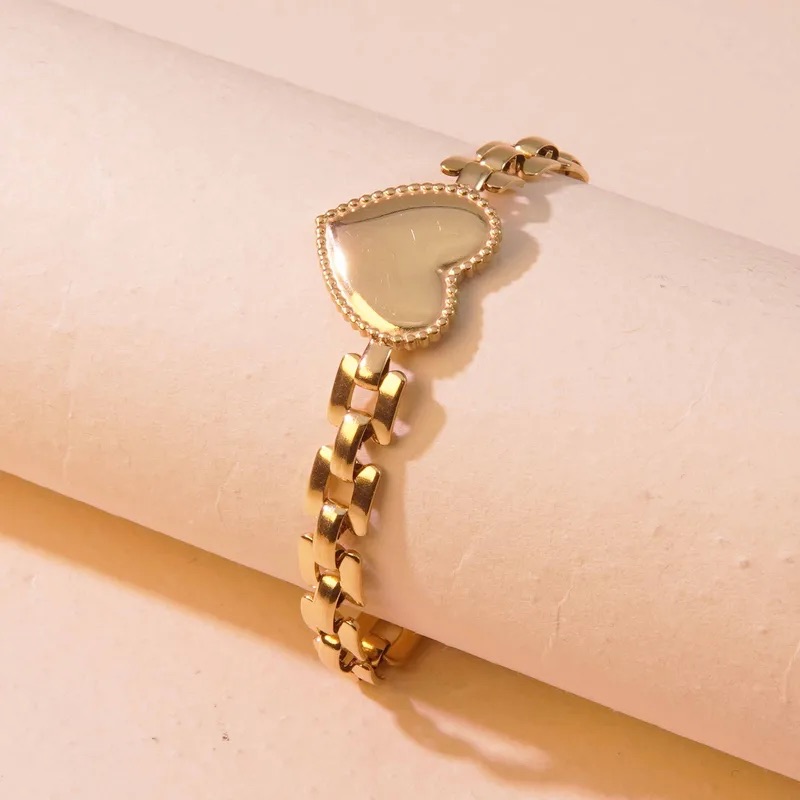 A charming bracelet featuring a sleek gold chain with a central puffed heart detail. Stylish, feminine, and versatile for daily wear or special occasions.