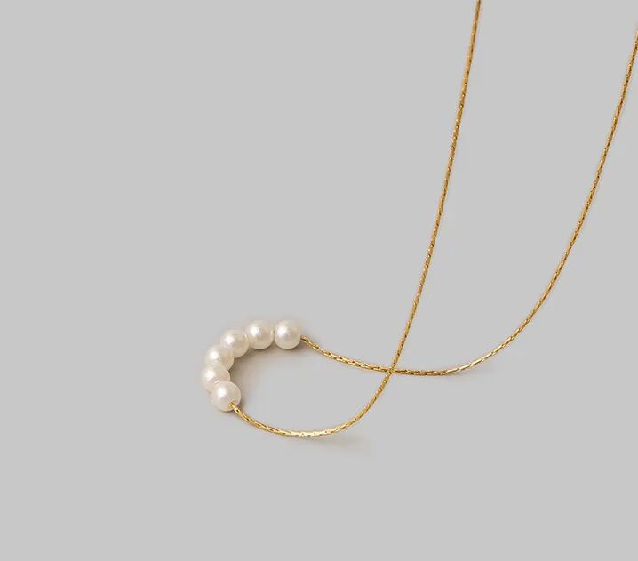 A timeless blend of simplicity and sophistication, this necklace features a delicate gold chain holding an arc of luminous pearls. Perfect for elevating both casual and formal looks with understated elegance.