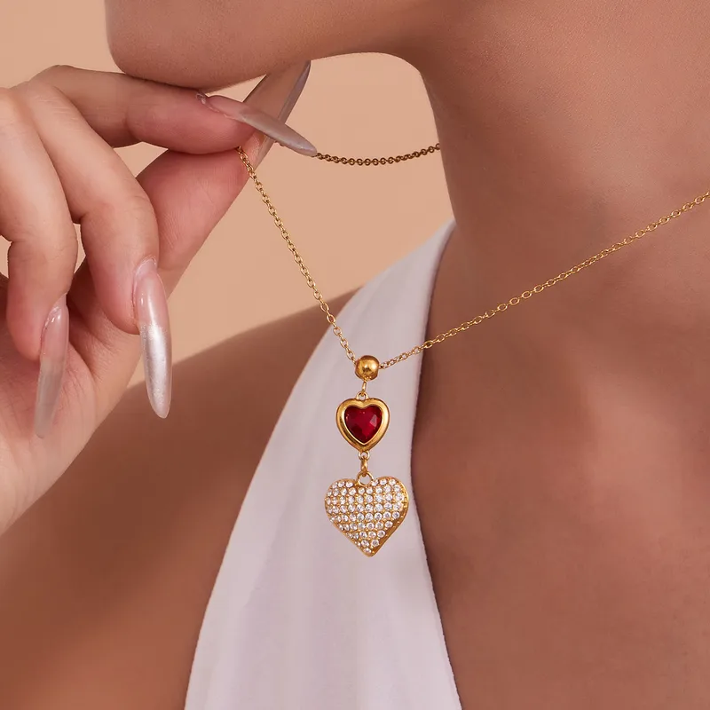 Be the first to review “Red & Crystal Heart Charms Necklace”